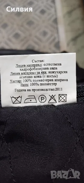 Якето е българско производство, подплатено, обличано един-два пъти, неразличимо от ново. Естествена кожа, яката е от агнешка кожа, дължина 80см, широчина 134см.