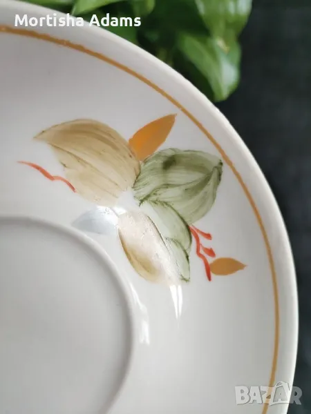 ⚜️ Комплект от пет нежни съветски подложни чинийки с ръчно нанесена декорация и диаметър 13,5см., Полонский фарф. завод, период 1980-91г. Леки драскотинки по глазурата и дребни производствени несъвършенства.