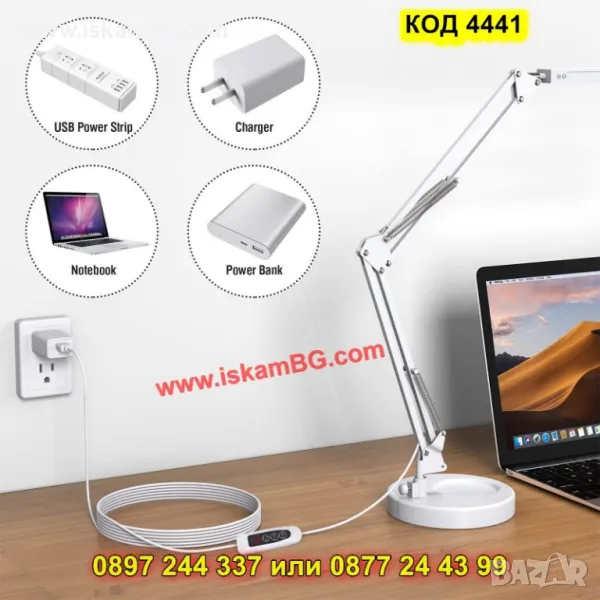 Функционална LED лампа с регулируемо рамо, която осигурява комфортно и прецизно осветление за работа, учене или четене. С три цветови режима и регулируема яркост, тя е идеалното допълнение към всяко бюро.