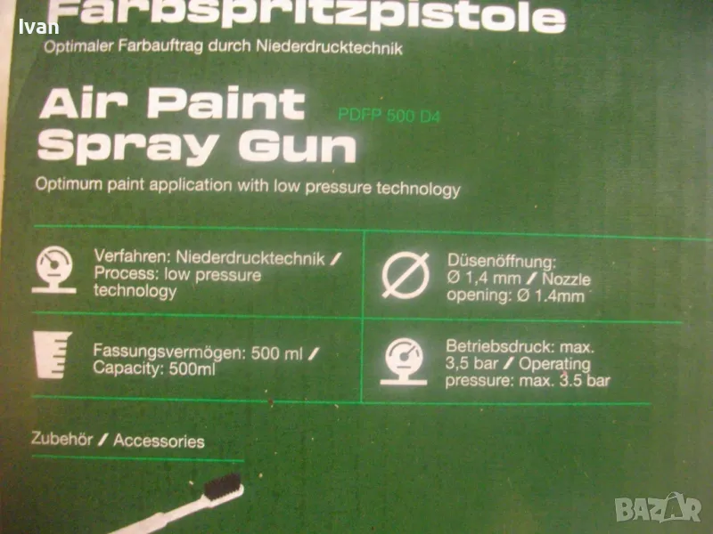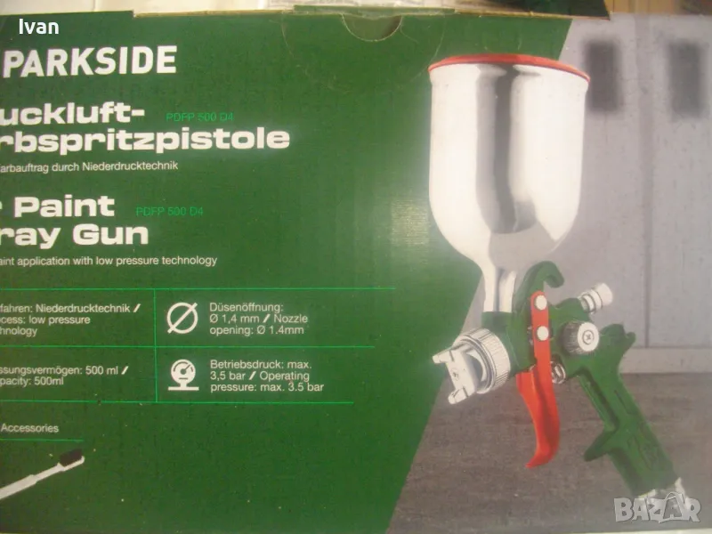 НОВ ПНЕВМАТИЧЕН БОЯДЖИЙСКИ ПИСТОЛЕТ С ДЮЗА 1,4мм ПЪЛЕН КОМПЛЕКТ PARKSIDE