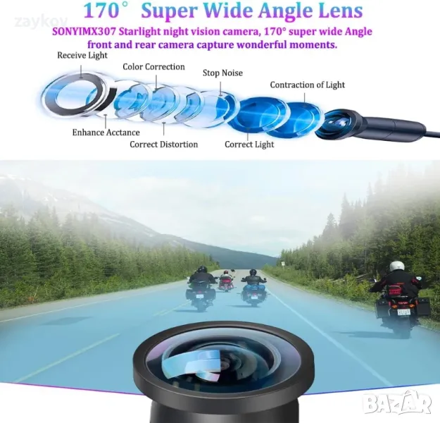 VSYSTO WiFi мотоциклетна камера, водоустойчив 4,5-инчов екран GPS HD 1080P WDR 170° широкоъгълни