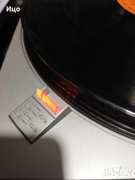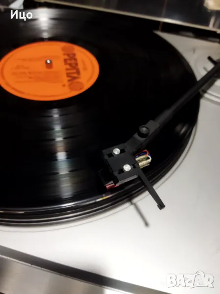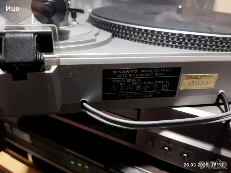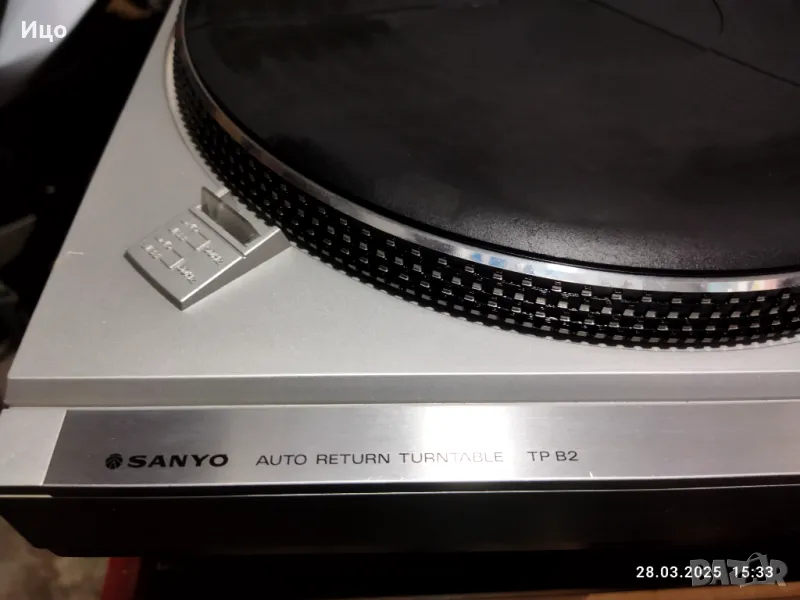 Модел Sanyo TP 82.Belt drive.Ремъчен полуавтомат,внос от Германия.В пълна изправност, единствено сменен нов ремък.отличен външен вид.Нова доза и иглаЗдрав и чист откъм следи капак,здрави панти.Запазена машина,която предпочитам да дам на ценител.Лично.предаване.