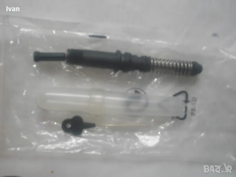 бояджийски пистолет. Старо качество от 90-те години на 20-ти век. Марка AIRPRESS. Производство маркирано Made in Taiwan. Дюза поставена размер 0,8 мм. Машината е пробван от мен с вода - работи много добре, разпръсква силно и мощно. Регулатор на струята. Корпус на машината - твърда пластмаса. Резервояр за боята вместимост 1 л. Мрежеста филтърна цедка, бронзово рамо за боята. Чашка за боята. Пликче с резервни части /масивна дълга игла за почистване на дюзата и ново резервно бутало/. Тегло на машината - около 1,8 кг.