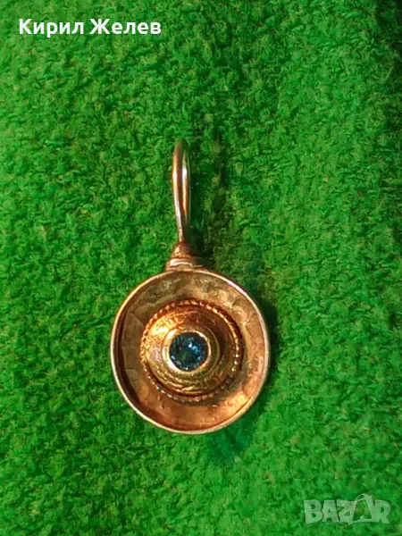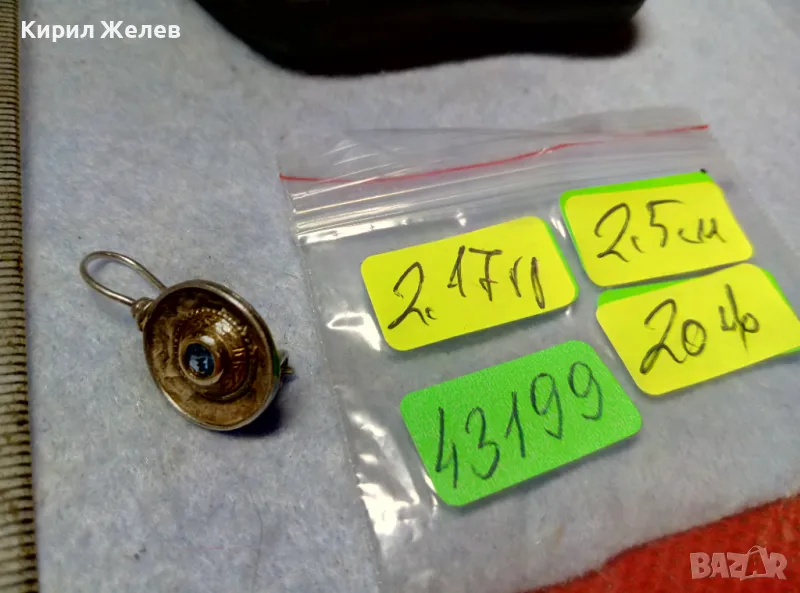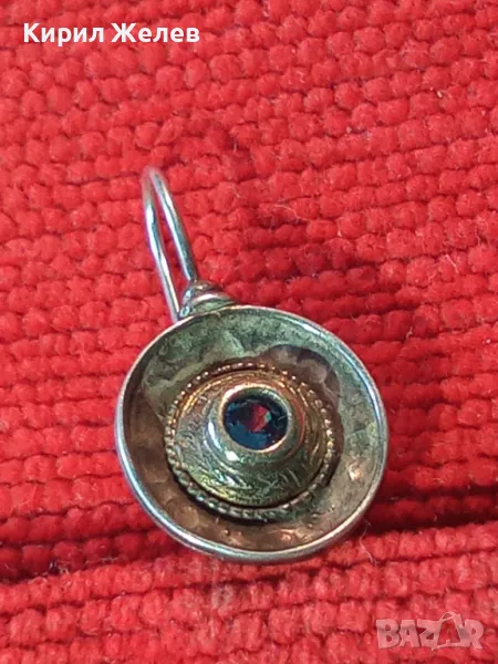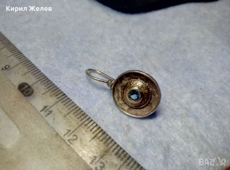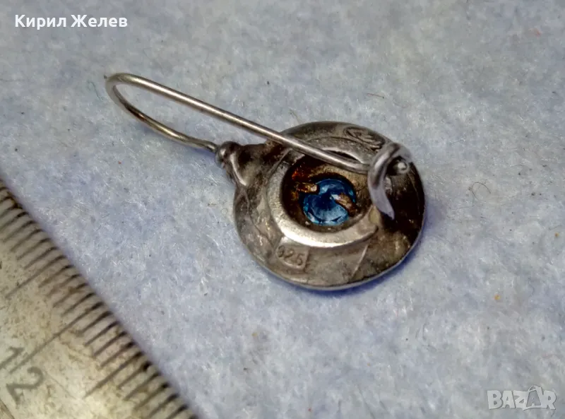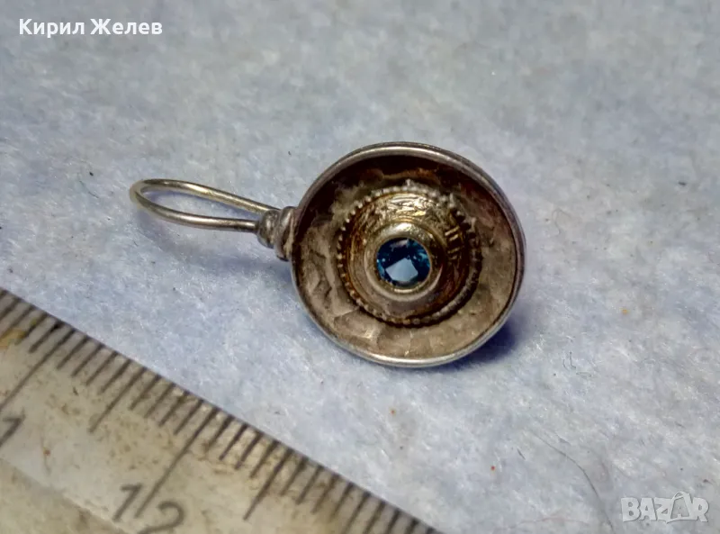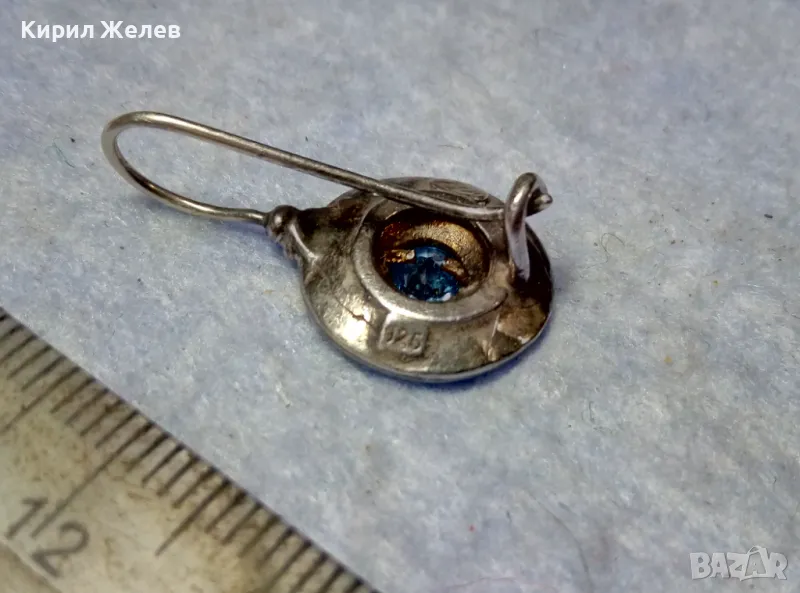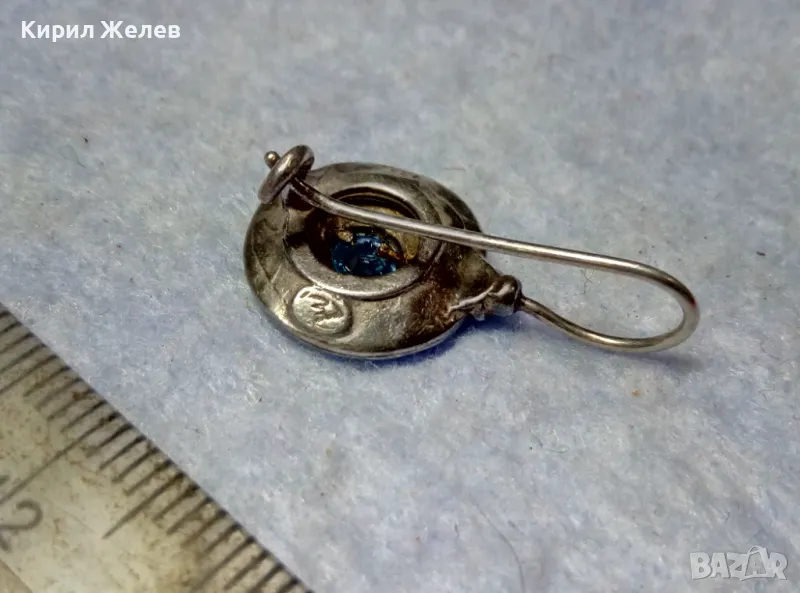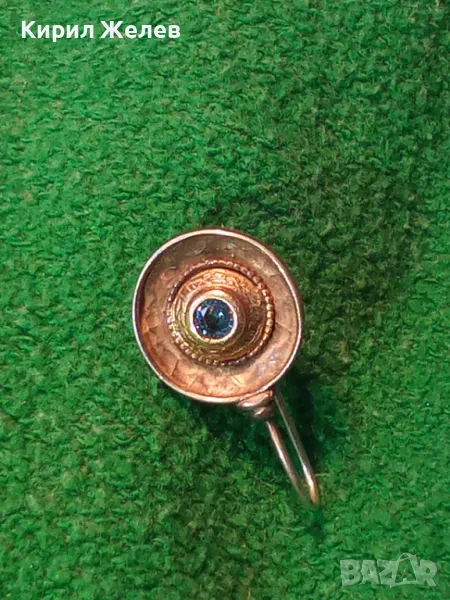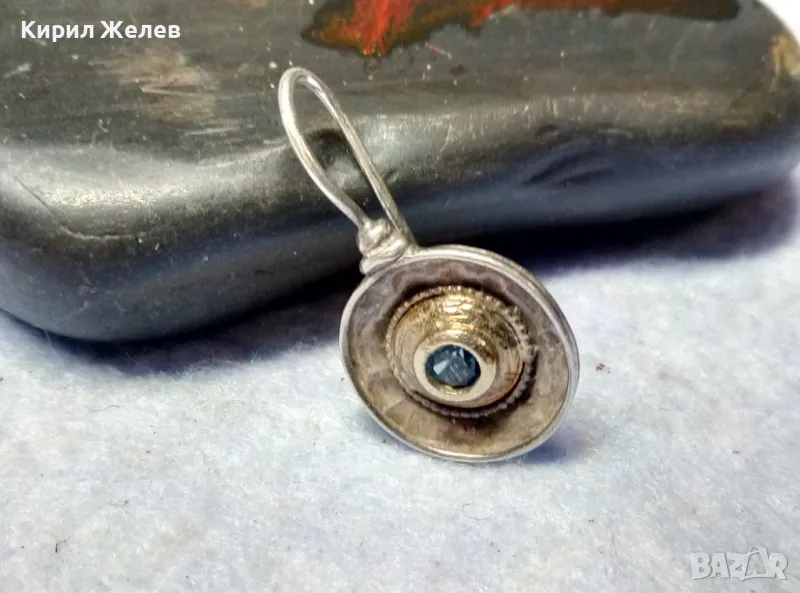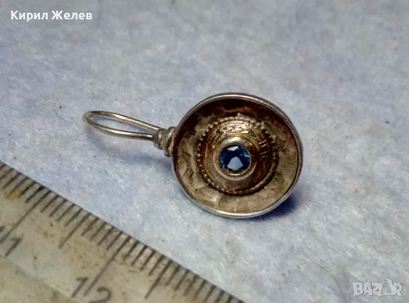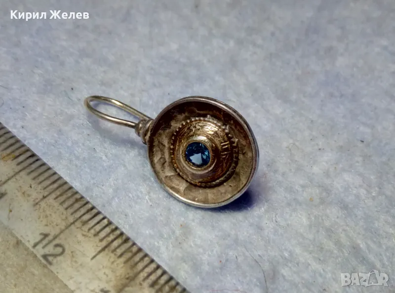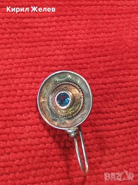 СТАРА СКЪПОЦЕННА СРЕБЪРНА ОБЕЦА СРЕБРО 925 със СИН ЦИРКОН РЪЧНА ИЗРАБОТКА с ЩЕМПЕЛ на МАЙСТОРА 43199