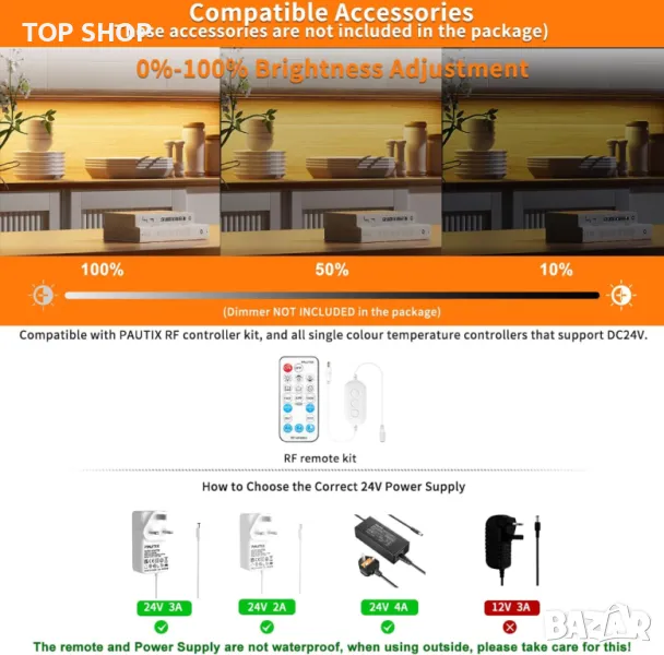 Водоустойчиви LED ленти COB PAUTIX IP67, обвити в силикон за пълна водоустойчивост и устойчивост на атмосферни влияния, подходящи както за вътрешна, така и за външна употреба. Уверете се, че захранването и контролерът са водоустойчиви, ако се използват на открито (не са включени). С 2400 LED чипа на 5m лента (480 LED/метър), осигуряващи ултра-ярко и равномерно осветление без тъмни петна, благодарение на технологията COB (Chip On Board). Лентата е „направи си сам“ и може да се реже, което позволява гъвкаво персонализиране за вашите проекти за осветление. С висок индекс на цветопредаване (CRI>93) за осветление от професионален клас, заедно с широк ъгъл на лъча от 180 градуса за по-широко осветяване. Изработена от материали, включени в списъка на UL, тази LED лента COB гарантира издръжливост и безопасност за ежедневна употреба, с продължителност на живота над 50 000 часа.