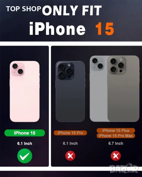 Калъф SHIELDON за: iPhone 15 Plus 5G 6.7"-черен; iPhone 15 6.1"-червен
