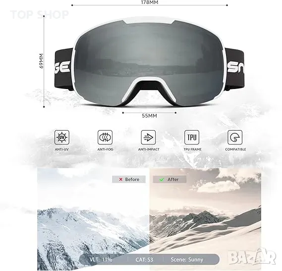 Очила за ски сноуборд Snowledge с UV400 защита, двойна леща с противозамъгляване, съвместими с каска, снимка 1 - Зимни спортове - 49682794 Очила за ски сноуборд Snowledge с UV400 защита, двойна леща с противозамъгляване, съвместими с каска, снимка 2 - Зимни спортове - 49682794 Очила за ски сноуборд Snowledge с UV400 защита, двойна леща с противозамъгляване, съвместими с каска, снимка 3 - Зимни спортове - 49682794 Очила за ски сноуборд Snowledge с UV400 защита, двойна леща с противозамъгляване, съвместими с каска, снимка 4 - Зимни спортове - 49682794 Очила за ски сноуборд Snowledge с UV400 защита, двойна леща с противозамъгляване, съвместими с каска, снимка 5 - Зимни спортове - 49682794 Очила за ски сноуборд Snowledge с UV400 защита, двойна леща с противозамъгляване, съвместими с каска, снимка 6 - Зимни спортове - 49682794 1/6