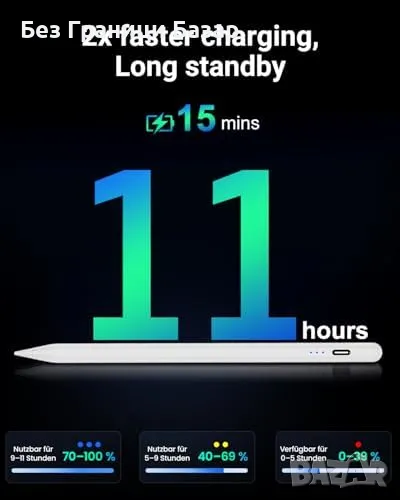 Зареждане за 15 минути = до 11 часа работа – без нужда от Bluetooth