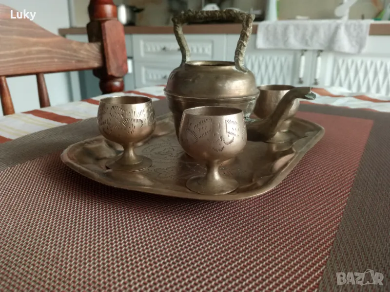 Прекрасно антикварно предложение. Пълен комплект за греена ракия... Ръчна изработка. -Материал-мед, бронз.