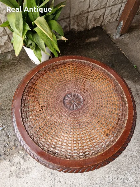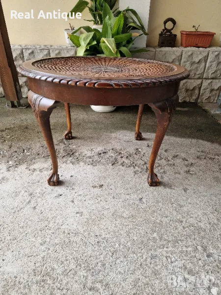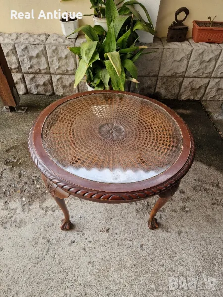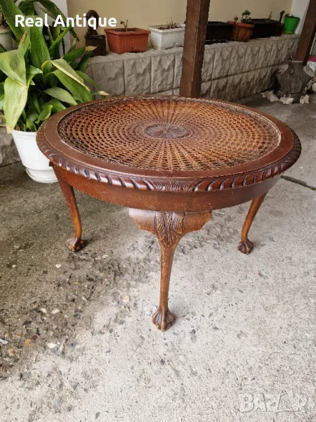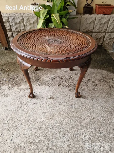 Продавам уникална антикварна английска масичка Чипъндейл от масив с ратан ръчно гравирана от началото на 20 век в перфектно състояние. С предпазно стъкло. Ратана е без забележки. Размери диаметър 75 см и височина 50 см. Прекрасно допълнение към интериора на Вашия дом офис вила ресторант хотел. Подходяща и за подарък. Работя с всички куриери. Отговарям бързо.