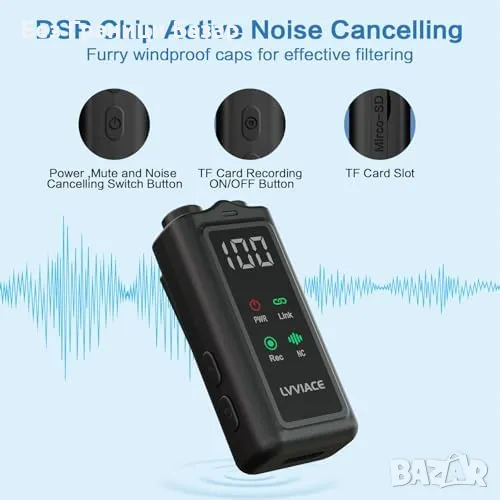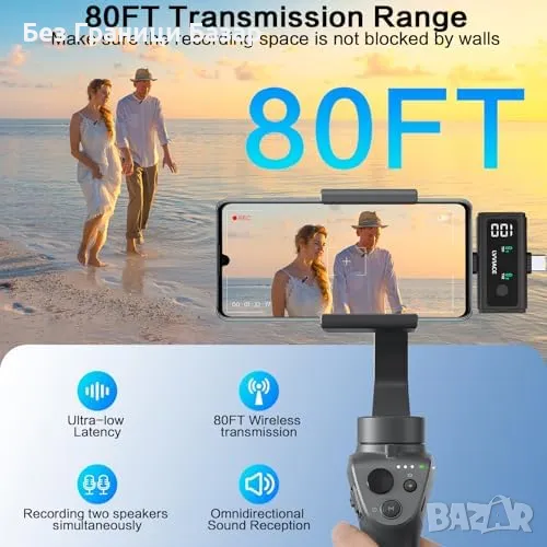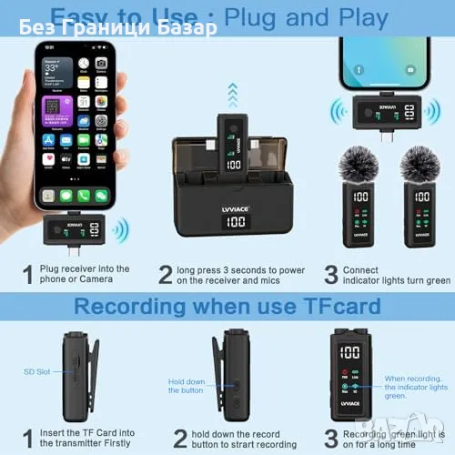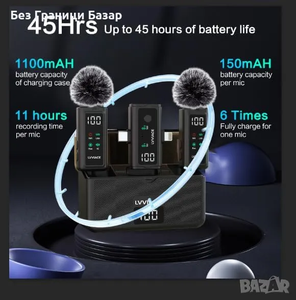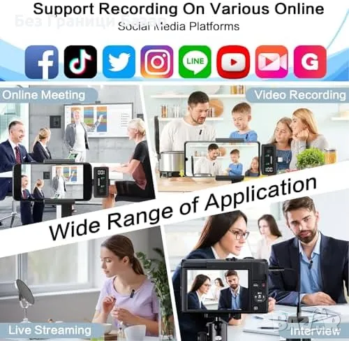 Нов 3 в 1 безжичен микрофон – iPhone/Android/Камера, 45ч батерия, влог