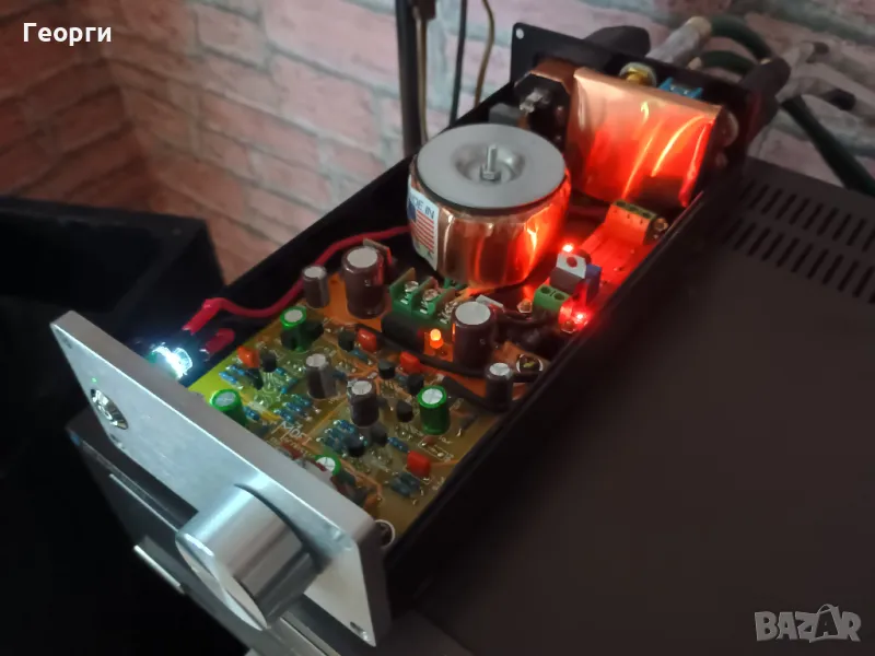 Предлагам ръчно изработен транзисторен Предусилвател на MOFI Acoustics в Class A direct-coupled дискретна схема на усилване вход>изход, без кондензатори по пътя на сигнала. Устройството е изградено изцяло с немагнитни материали (алуминий, мед и месинг), поместено в солидна Die-cast алуминиева кутия, с 6мм преден панел, за минимализиране на всички външни и вътрешни магнитни полета. Използвано е OFC Cordial качествено екранирано медно окабеляване в сигналните трасета, както и медно-екраниран двоен тороидален трансформатор, специализиран за аудио приложения.
