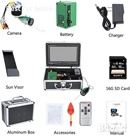 【1000TVL Водоустойчив търсач за риба】— Напълно водоустойчив IP68 алуминиева сплав 90-градусов дизайн във формата на риба, студоустойчив, водоустойчив, устойчив на издърпване кабел. Чипът на камерата 1000TVL е надграден, за да направи картината по-ясна и възпроизвеждането на цветовете по-добро.