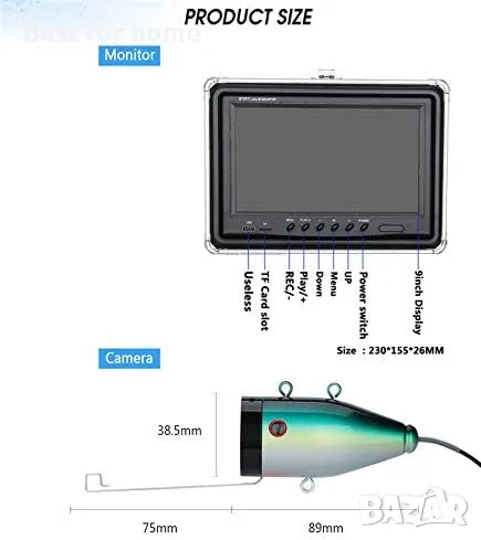 【9'' IPS LED монитор】— Подводният риботърсач разполага с нов 9-инчов 1280*720 дисплей с висока разделителна способност, показващ по-ясен ефект, а IPS панелът с пълен изглед гарантира, че можете да видите изображението от всеки ъгъл. В допълнение, той е оборудван със сенник за по-удобно използване на открито.