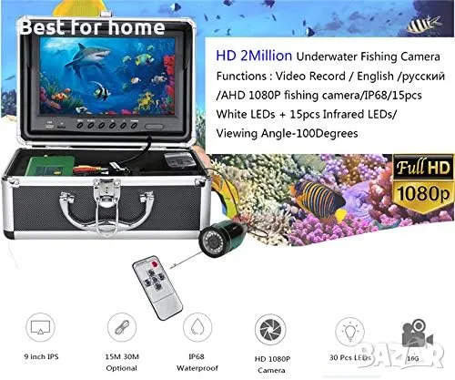 Камера с висока разделителна способност: заснемайте ясни изображения мегапикселова HD камера за риболов, с 15 броя бели светодиоди и 15 броя инфрачервени лампи за осветление с висок интензитет.