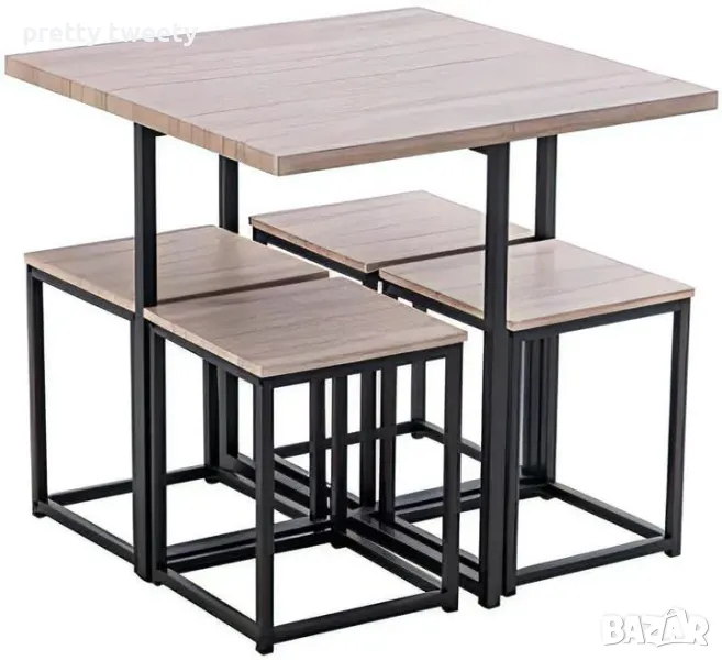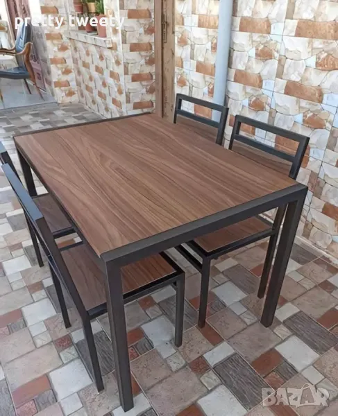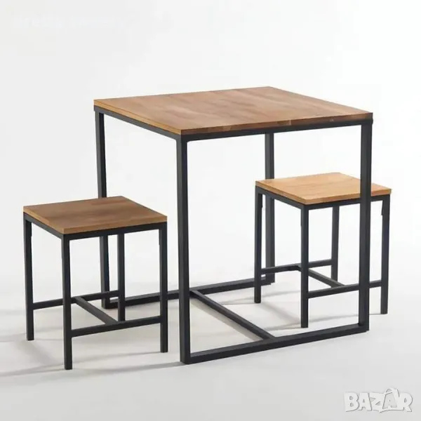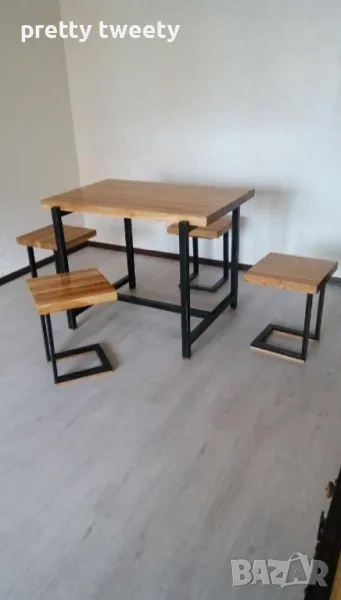 Комплект маса със столове от метал и дърво или метал с ПДЧ плотове в индустриален стил → Обява 49684977