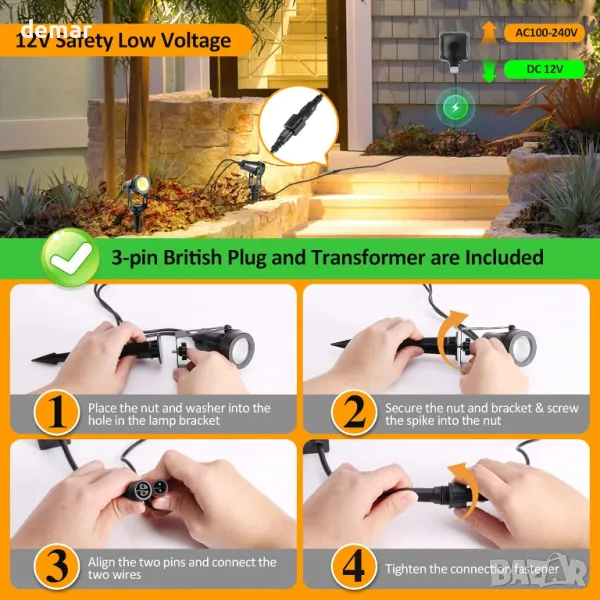 Тези градински лампи разполагат с ярки 1600 лумена COB светодиоди с топла светлина от 2700K и до 30 000 часа живот, предлагайки по-мека, по-привлекателна атмосфера от слънчевите опции. Общата дължина на кабела от 21 метра позволява гъвкаво поставяне на до 8 светлини, с опции за разширение за персонализирани настройки. Изработени от издръжлив, устойчив на UV лъчи ABS и водоустойчив IP67, те са проектирани да издържат на сурово време (въпреки че щепселът трябва да остане сух). Системата за ниско напрежение 12V е лесна за инсталиране без инструменти и осигурява много по-безопасна алтернатива на външното осветление с високо напрежение.
