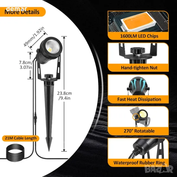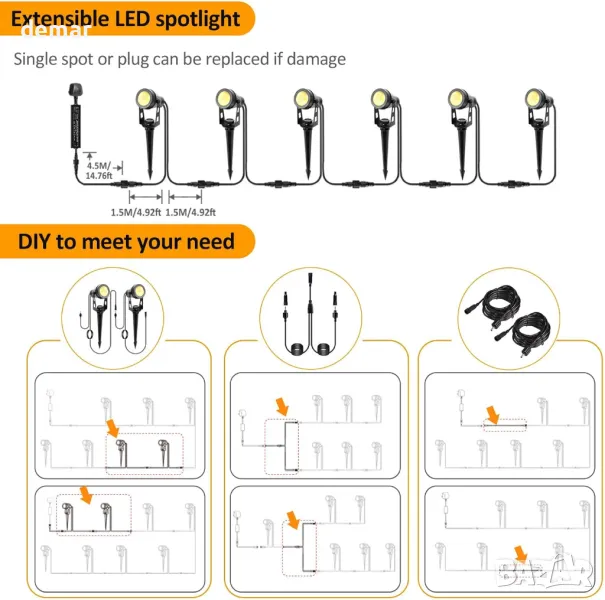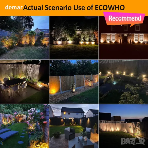 Градински светлини ECOWHO 21 метра, 6 броя * 3W, 12V LED външни прожектори, IP65