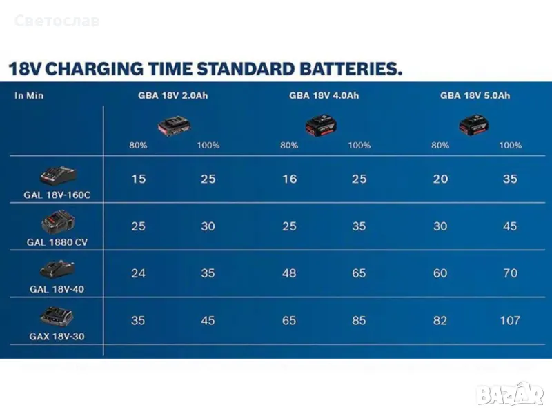 Време на зареждане при капацитет на акумулаторната батерия 5,0 Ah, (80%/100%) прибл.20/35min