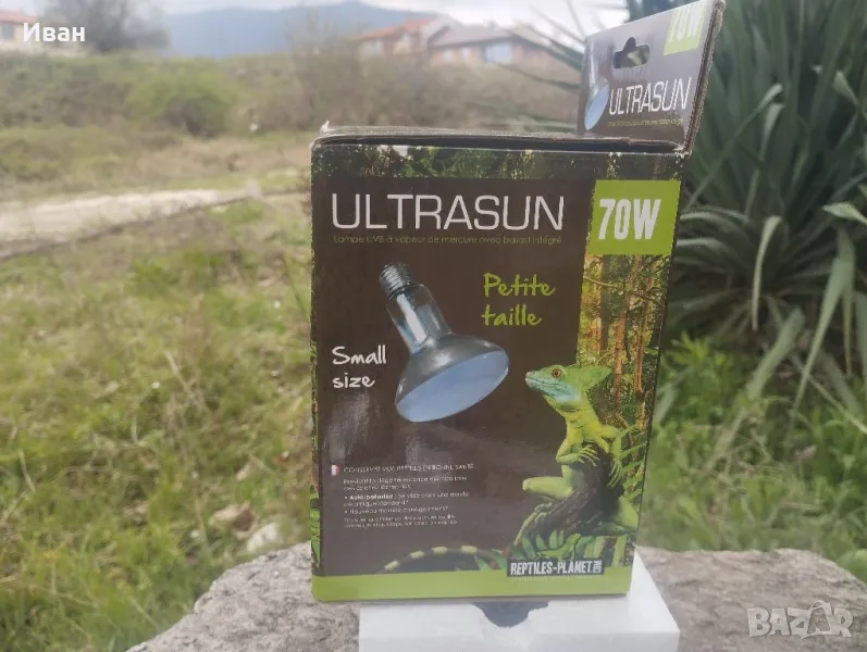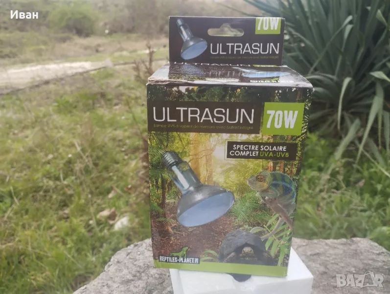 терариум е висок, изберете тип Ultrasun лампа с живачна пара, защото ако искате да поставите лампата извън терариума и ще загубите 50% от UVB лъчите. Трябва да обърнете внимание на този факт, често забравян при избора на лампа, или на флуоресцентна такава. За информация, стойности от 1 до 15 µW / cm² са наистина ниски, приемливи само за змии или жаби. Ultrasun лампите са предназначени за тропически или пустинни гущери и костенурки. Балансираните UVB лъчи за благоприятни за растежа на твърди структури каато люспи, нокти или черупки. Предотвратява метаболитната дегенерация на костите. UVB лъчите, съдържащи се във вашия Ultrasun, ще помогнат на вашите влечуги да фотосинтезират провитамин D3 (оптимална абсорбция на калций чрез производството на витамин D3) UVA ще осигури физиологично благополучие на животните чрез ограничаване на стреса.