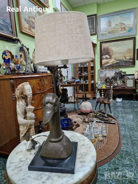 Продавам уникална антикварна дизайнерска нощна настолна лампа с бронзова фигура в перфектно състояние без никакви забележки. В стил Maison Jansen . Височина 60 см. Прекрасно допълнение към интериора на Вашия дом офис вила ресторант хотел. Подходяща и за подарък. Работя с всички куриери. Отговарям бързо.