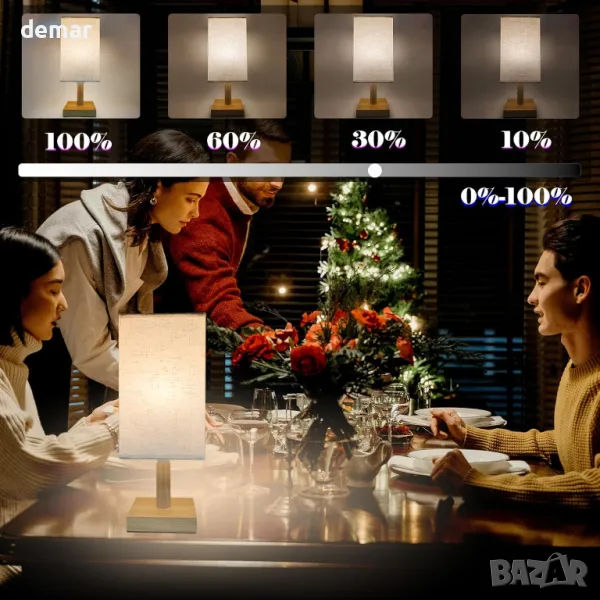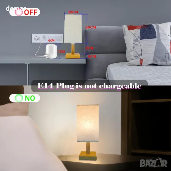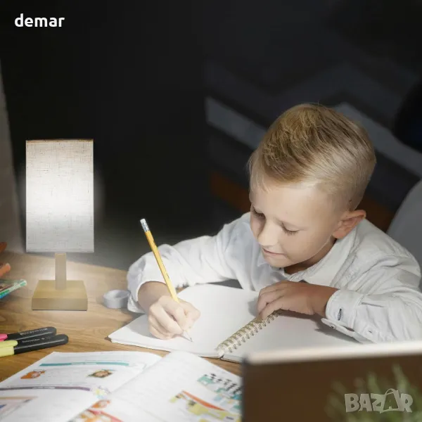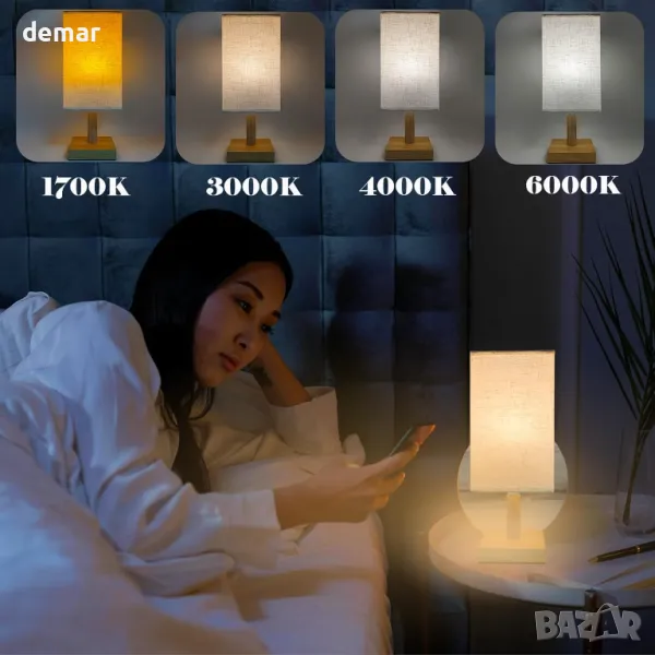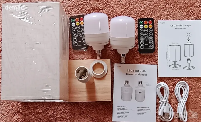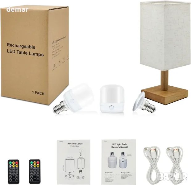 Тази безжична настолна лампа, захранвана с батерии, разполага с подвижен абажур от плат, естествена дървена основа и акумулаторна LED крушка, която служи като самостоятелен източник на светлина. Управлявана от дистанционно в рамките на 10 метра, крушката предлага регулируема яркост, цветна температура, четири светлинни режима, опции за таймер, дишане и SOS функции. С мощност от 700 лумена и основа E14 (само за фиксиране), отговарая на крушка от 40 W и избягва проблемите с батериите за еднократна употреба. Батерията от 2000 mAh се зарежда чрез Type-C за 2–3 часа и издържа над 12 часа. Подходящ както за употреба на закрито, така и за дейности на открито като къмпинг.