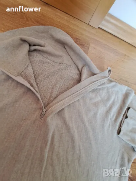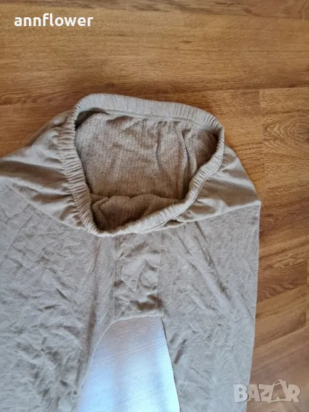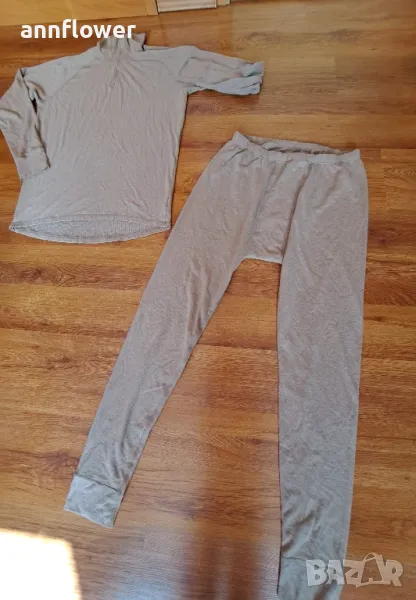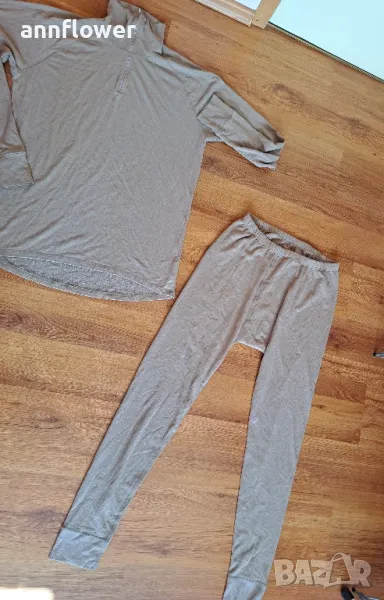 Комплекта бьжов 30лв, може и по отделно , блуза 15лв клин 15лв. клина е чисто нов но няма етикет, блузата е обличана. Цвят бежов материя 60% modacrylic 40% памук, меки ватирани. Размер L.Клин- дължина 105см ширина в ластика едностранно измерена без да разстягам 40см разтяга се до 52см, тоест талия 80-100см.Блуза-Дължина отпред 70см, отзад 78см. Ширина в мишниците едностранно измерена без да разстягам 57см, дължина на ръкава от подмишницата 60см има дупка за палеца.