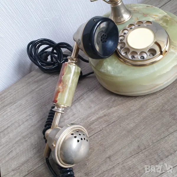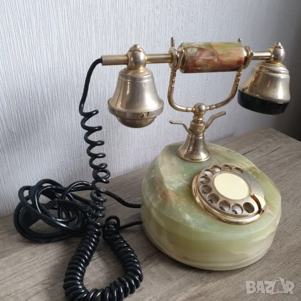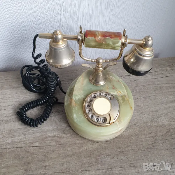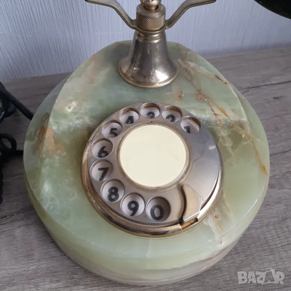 Античен телефон от 40- 50-те години на миналия век, изработен от италиански мрамор от този период.Би могъл да работи,само трябва да сложите телефонния адаптер, /не е тестван. Стар, ретро, винтидж, арт, старинен, античен, находка телефон със шайба, аналогов, напълно изправен механизъм.