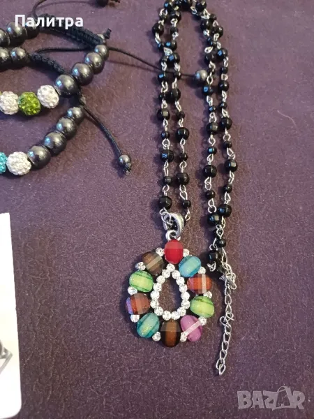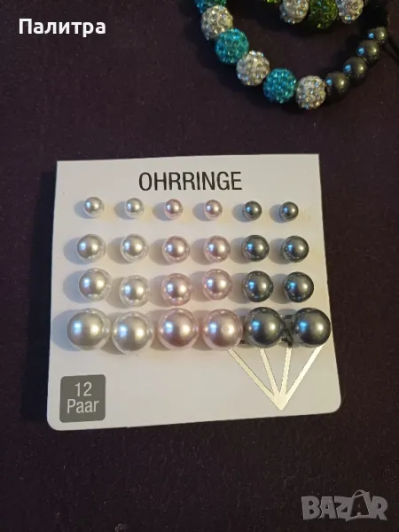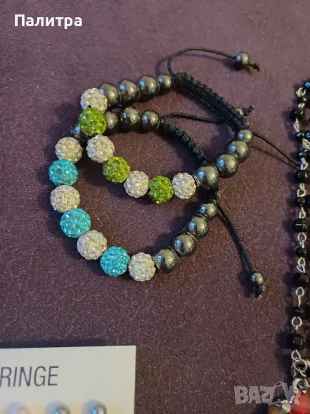Лот дамски бижута2 бр.гривни шамбала1 бр.колие12 чифта различни по големина перли