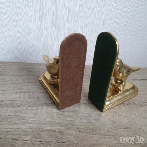 Книгоразделителите са изработени от плътен месинг.Височина 16 см, дължина 12,5 см, дълбочина прибл. 5см.