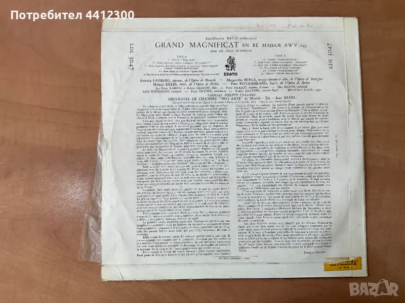 Здравейте, грамофонна плоча 12 инча- Bach Magnificet. Не нося отговорност за състоянието на плочите, не почиствам плочи. Вие поемате риск, когато закупувате от мен, ако имате въпроси, може да ми звънете на посочения номер или да ми напишете съобщение. Отговарям след 18 часа, цените не се коментират, ако не се вземат повече от 10 плочи. Благодаря, че прегледахте обявата ми. Лек и спокоен ден!