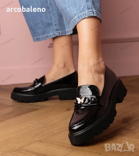Дамски лачени мокасини с цирконова пеперуда Sanita