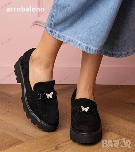 Черни дамски мокасини с циркон пеперуда Mokka