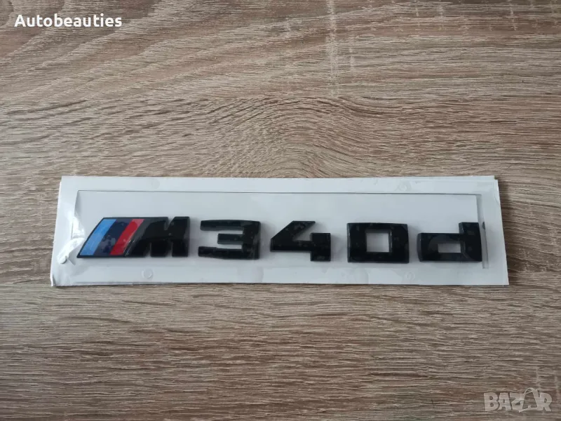 Нова емблема в черен гланц за модела на BMW М340d. Размерите са дадени на снимките. Височината на буквите е 2 см.