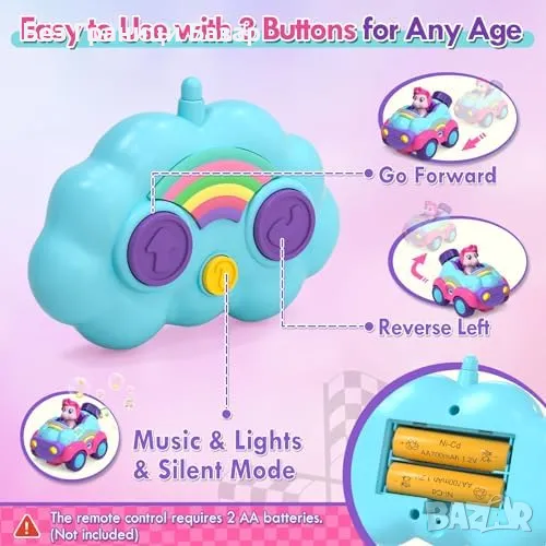Комплект от 2 еднорог коли с дистанционно управление – специално създадени за деца на 2–3 години