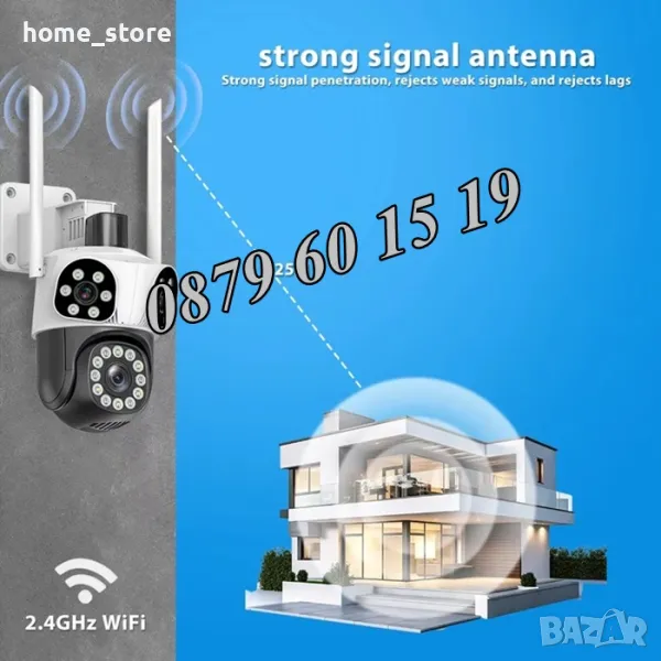 - Широк обхват на виждане: Въртене на 270 градуса хоризонтално и наклон на 90 градуса вертикално. Поддържа двупосочен аудио разговор в реално време и функции за откриване на движение и аларма.