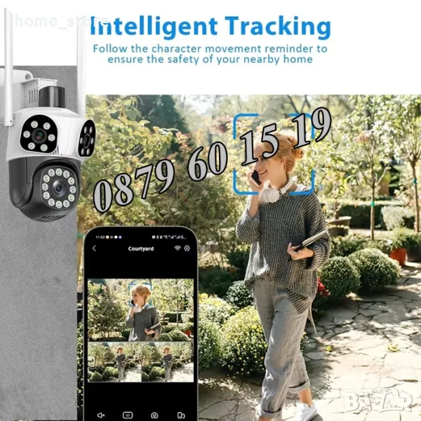 - Автоматично проследяване: Способност за проследяване на движещи се обекти след заключване на целта и известия на смартфона.