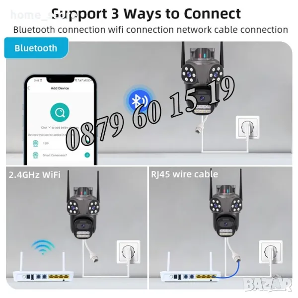 - Двойна връзка: Възможност за свързване чрез 2.4Ghz WiFi или кабелна връзка. Режим на хотспот за достъп до AP.