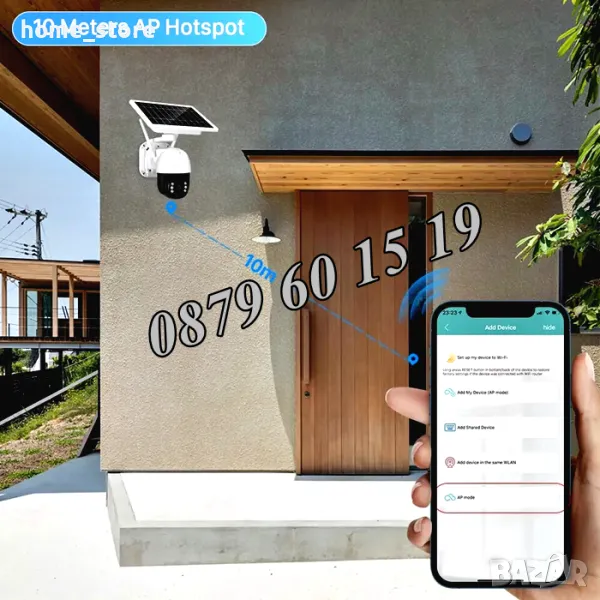 Дистанционно наблюдение на охраняемия обект през мобилен телефон, таблет. WIFI обхват на камерата до рутера - 50 метра (открит терен).