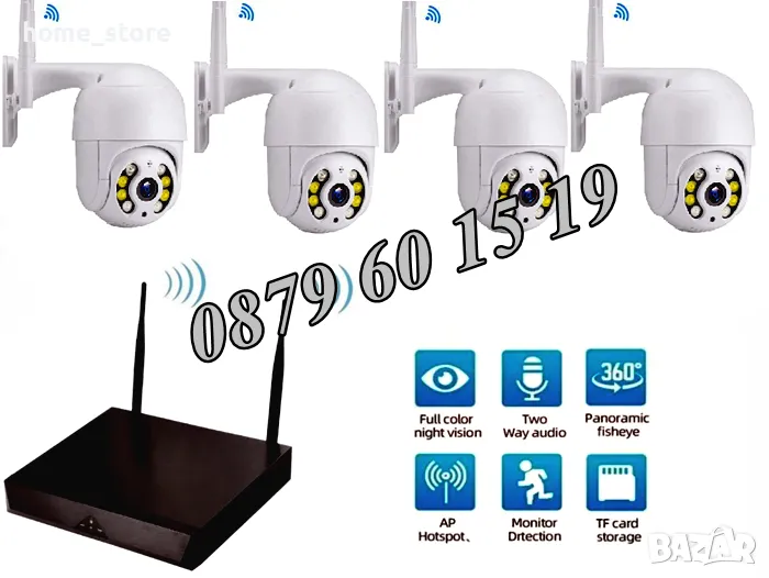 Ново поколение цифрова безжична система за видеонаблюдение, с включени 4 броя 5MPX въшни управляеми WiFi PTZ камери и 1 брой 4K 8MPX 8-канален DVR видеорекордер.