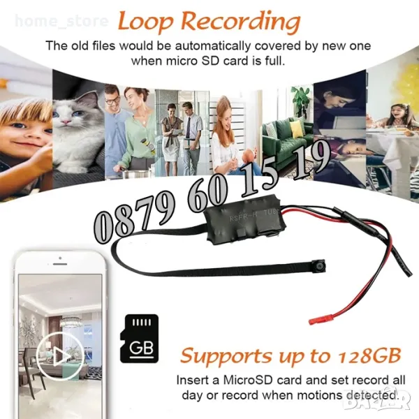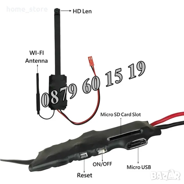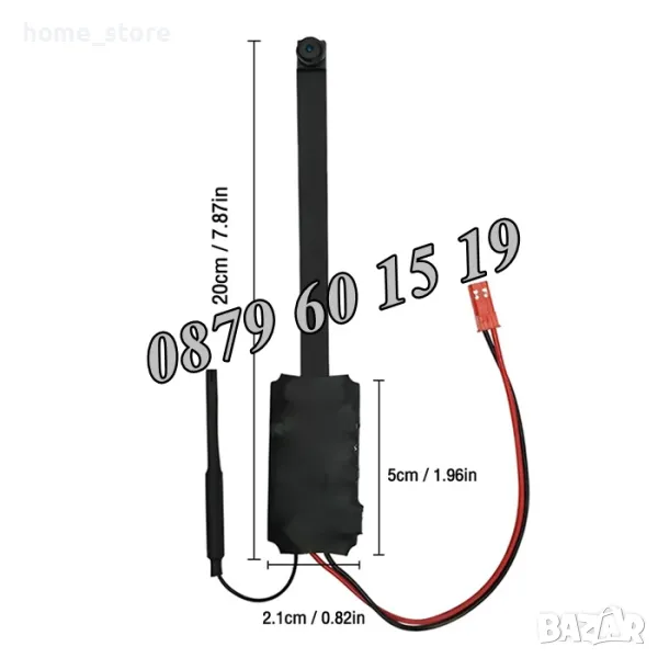 Този камера-модул ще осигури перфектна картина, благодарение на висококачествените си компоненти. Въпреки маниатюрните му размери, модула заснема с ъгъл на картината от 90° и може да записва непрекъснато видео повече от едно денонощие според размера на допълнително поставената в него Micro SD карт до 32GB. След активирането му, той ще може записва и чрез сензор при детекция на движение, за да пести памет и батерия.