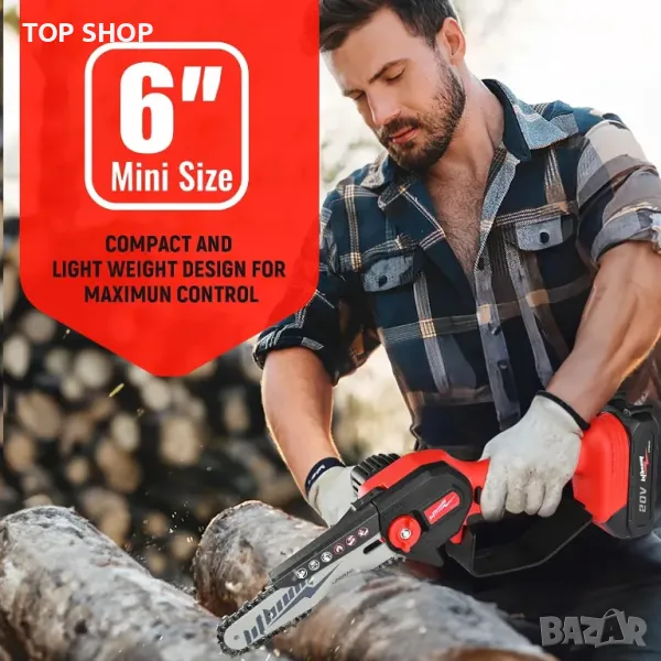 Безжичен мини верижен трион, 6-инчов електрически верижен трион, работещ с батерия 20V