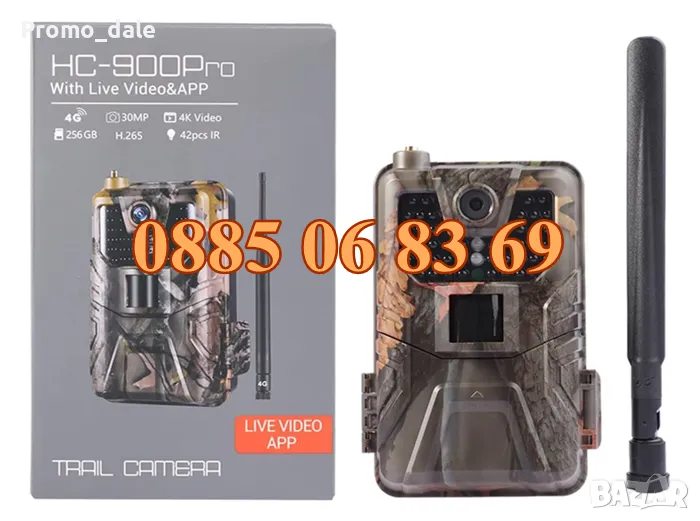 Ловна Камера HC900pro 30 MP 4G наблюдение в реално време 4К видео 120градуса сензор за движение 20м нощно виждане. Наблюдавате в реално време.