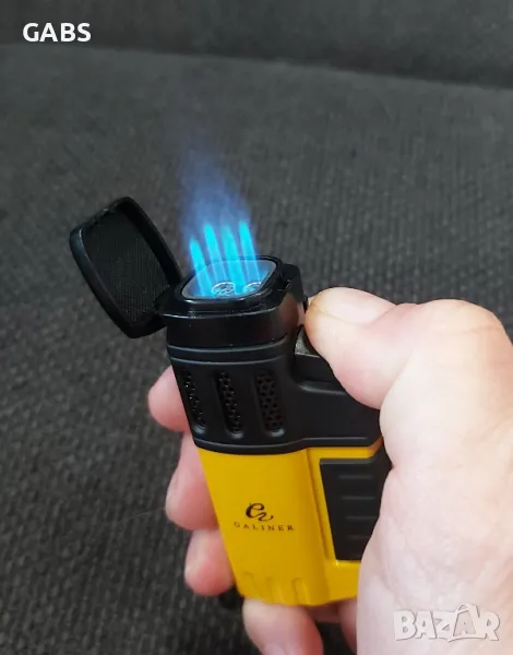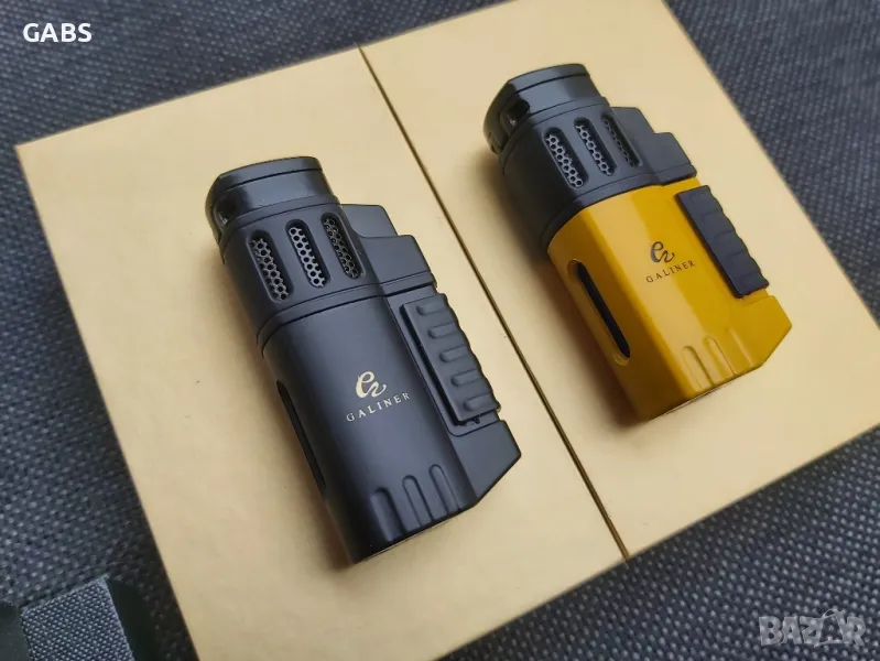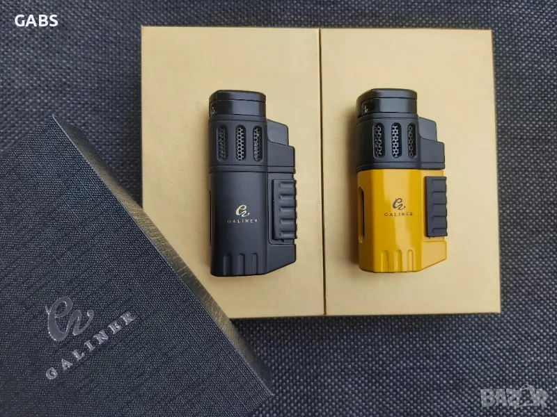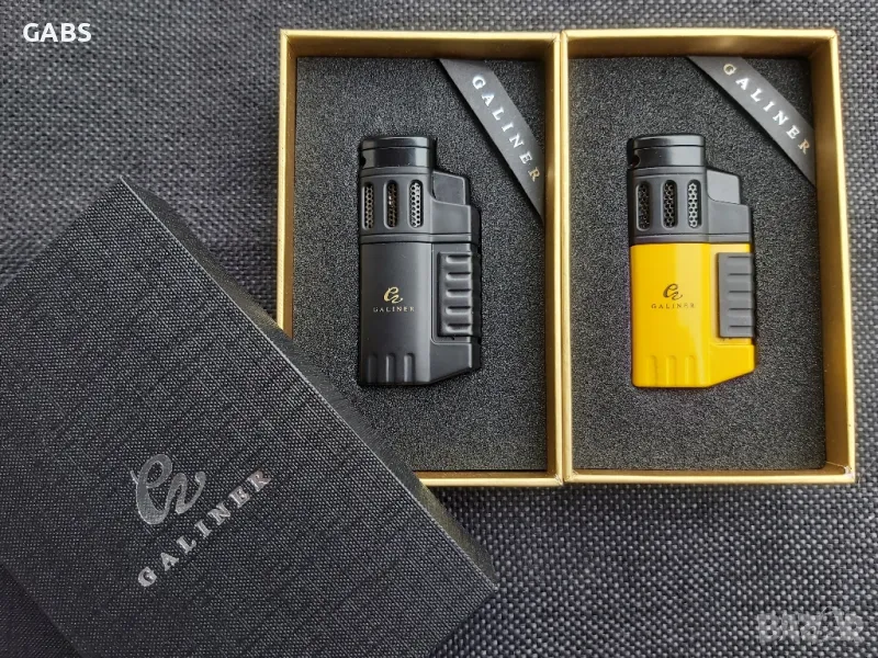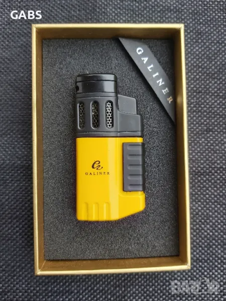 Луксозна запалка за пури GALINER в стилна подаръчна кутия.Тип на горене четворен джет.Запалката се пълни и регулира,има прозорче за нивото на газта и вграден пънч.Предлага се в два цвята- жълт и черен.
