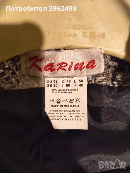 Дамско сако , размер 48 см. Гръдна 110 см, дължина 58 см, ръкав 58 см.
