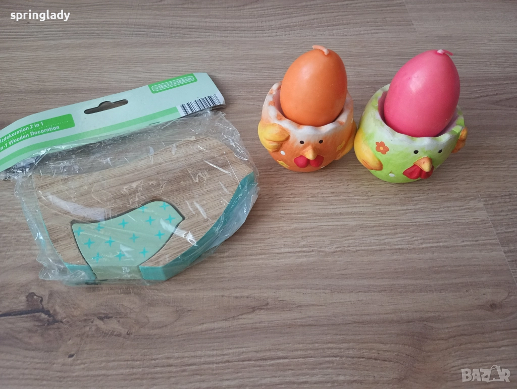 *Великденска декорация дървени пилета, подложки + яйце свещ 2бр - 5.50