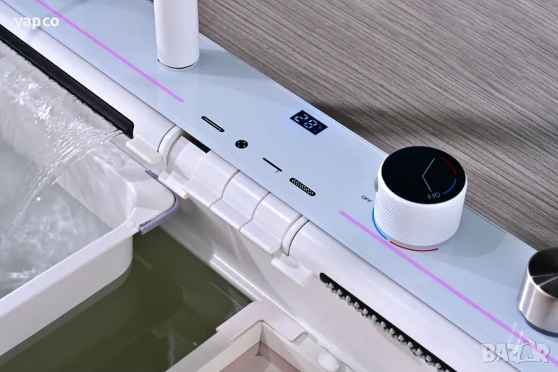 - Дисплей с индикация за температурата на водата и продължителността на използване
