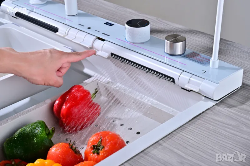 Висококачествена мултифункционална мивка от неръждаема стомана. Създава многофункционално работно пространство, за да можете удобно да миете плодове и зеленчуци с нейния