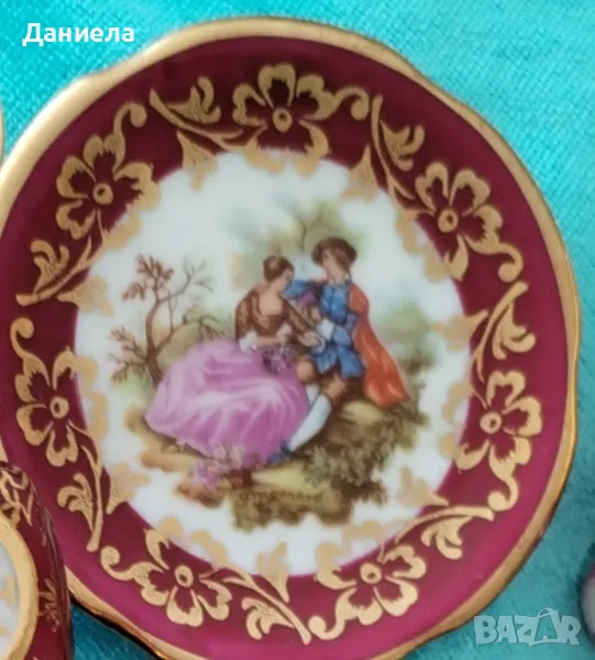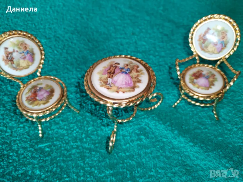 - Комплект порцеланови миниатюри маса и два стола с рисунки на Ромео и Жулиета на Fragonard. Подходящи за украса или кукленска къща.