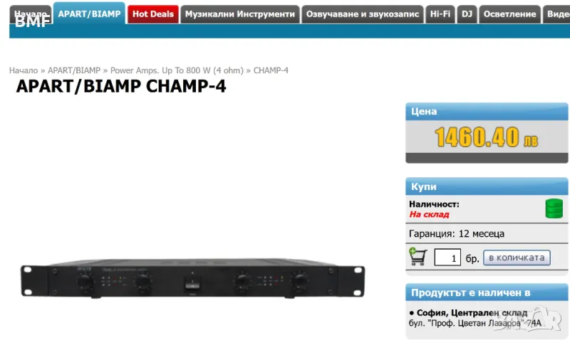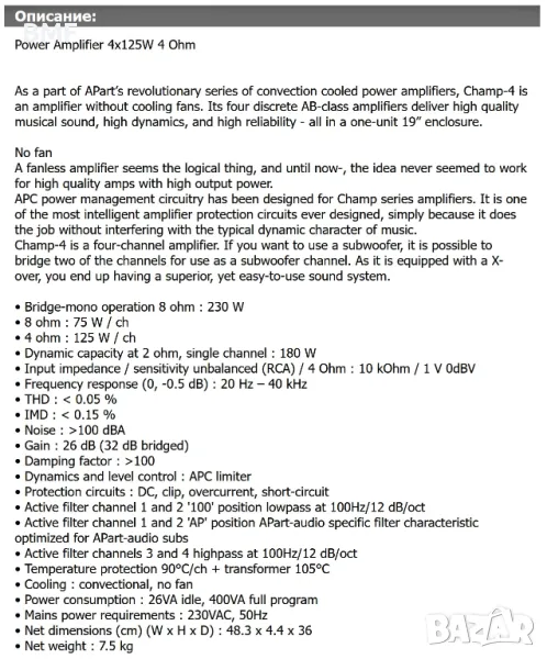 Нов усилвател / стъпало Apart Biamp Champ 4 (2 броя)